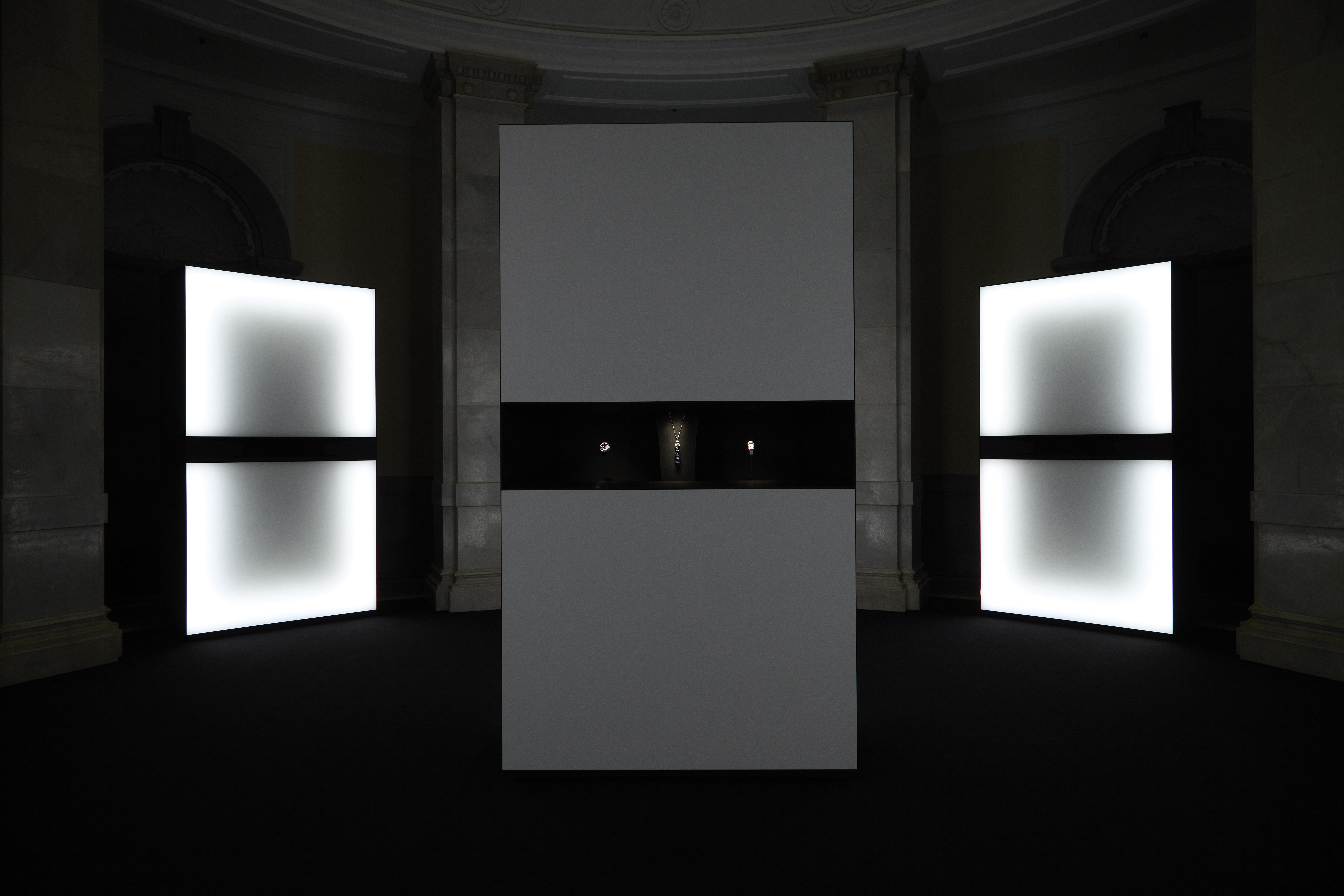 Poised between blur and focus, the installation explores the thresholds of diffusion between two forms, sound and light. A constellation of monoliths conceals active systems, shaping acoustic and luminous elements into a unified composition. Within this shifting environment, the new 2026 Haute Horlogerie collection gradually comes into view.