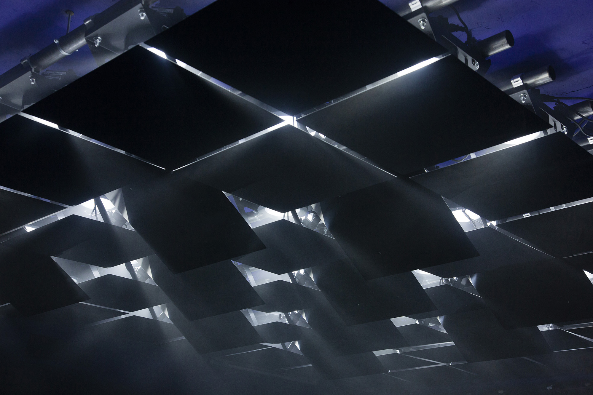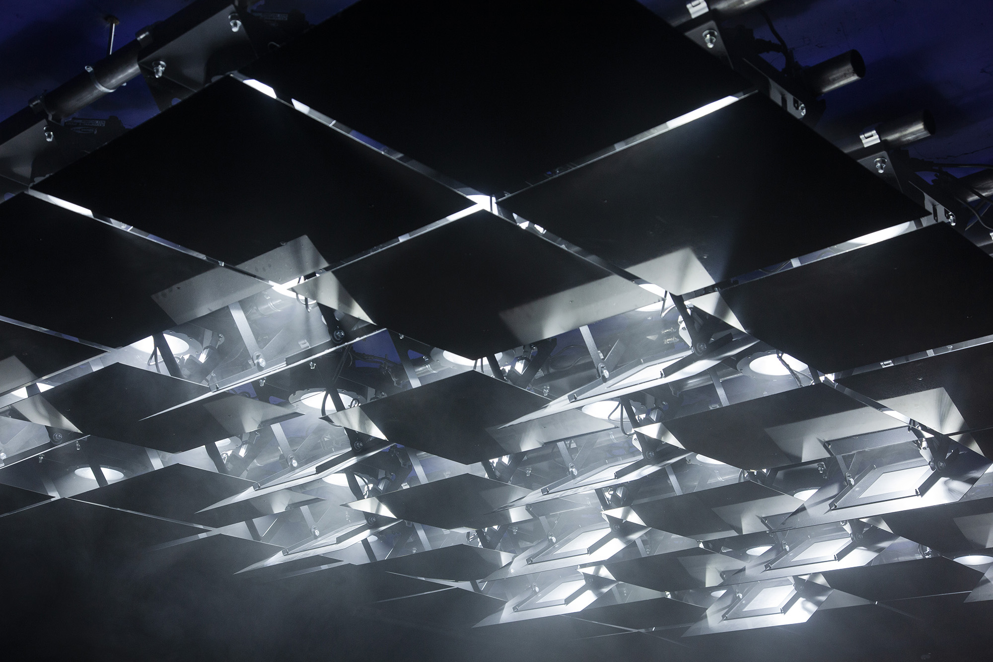 The proposal for Sacré Club’s light design expands on the meaning of the word ‘sacré’ (sacred), emphasising its mystical essence in the context of the night. Inspired by the sun's rays piercing the nave of a church, a motorized grid of mirrored panels structures the club’s ceiling. Reflected light bathes the dance floor indirectly, immersing the audience in both a kinetic and luminous experience. Through these two variables, the installation offers an infinite range of visual combinations that reveal new perspectives on the club’s architecture.