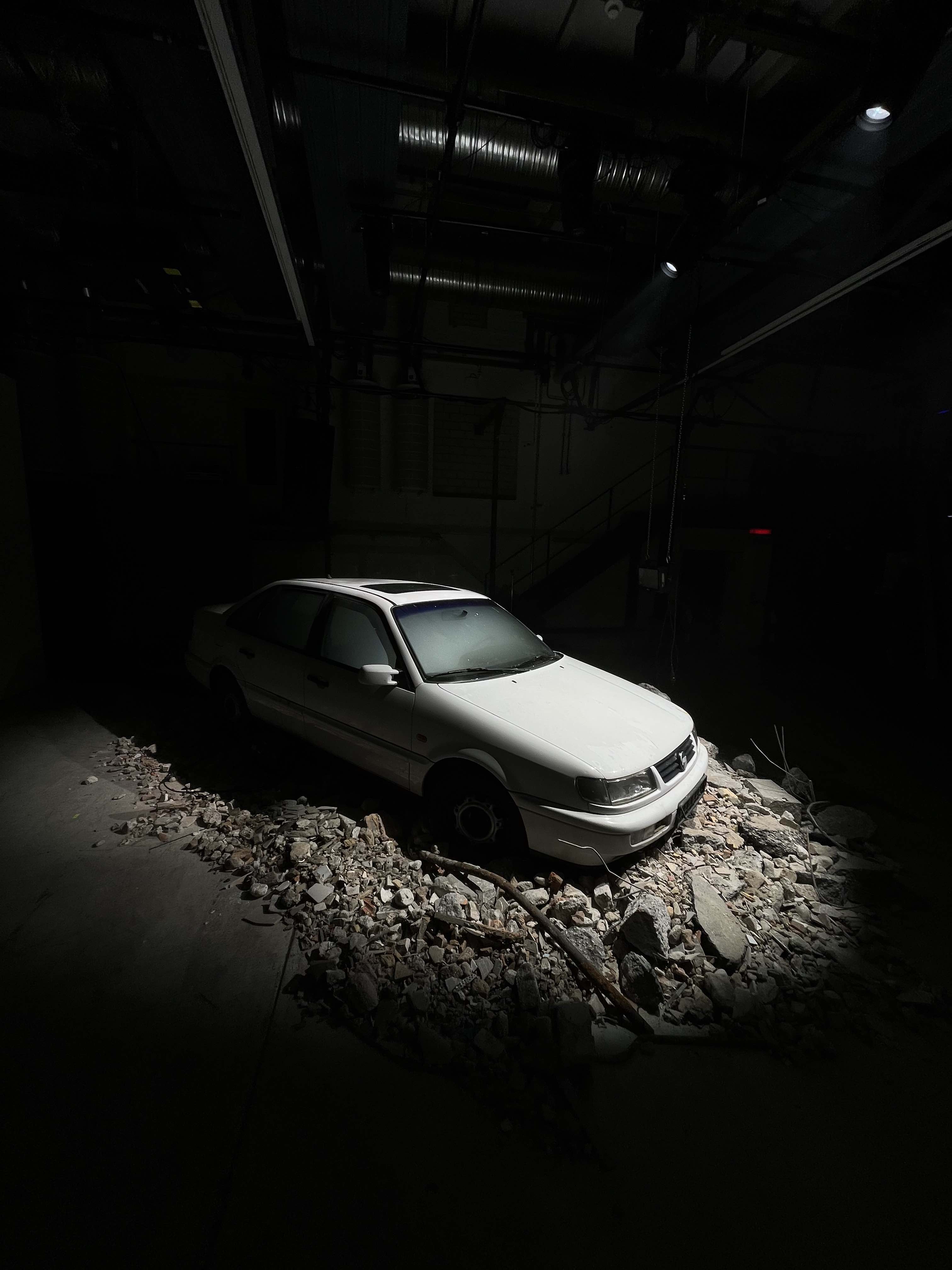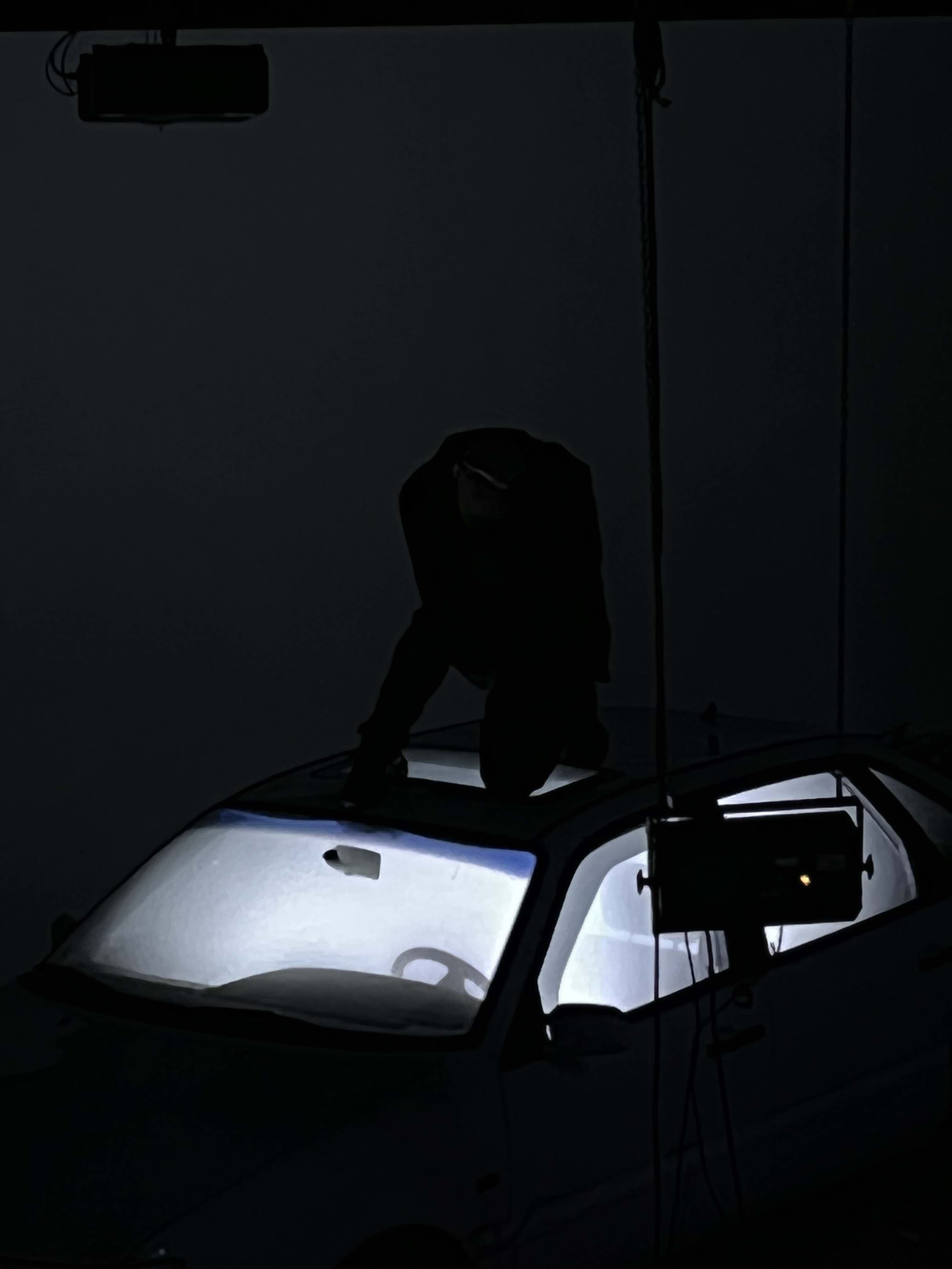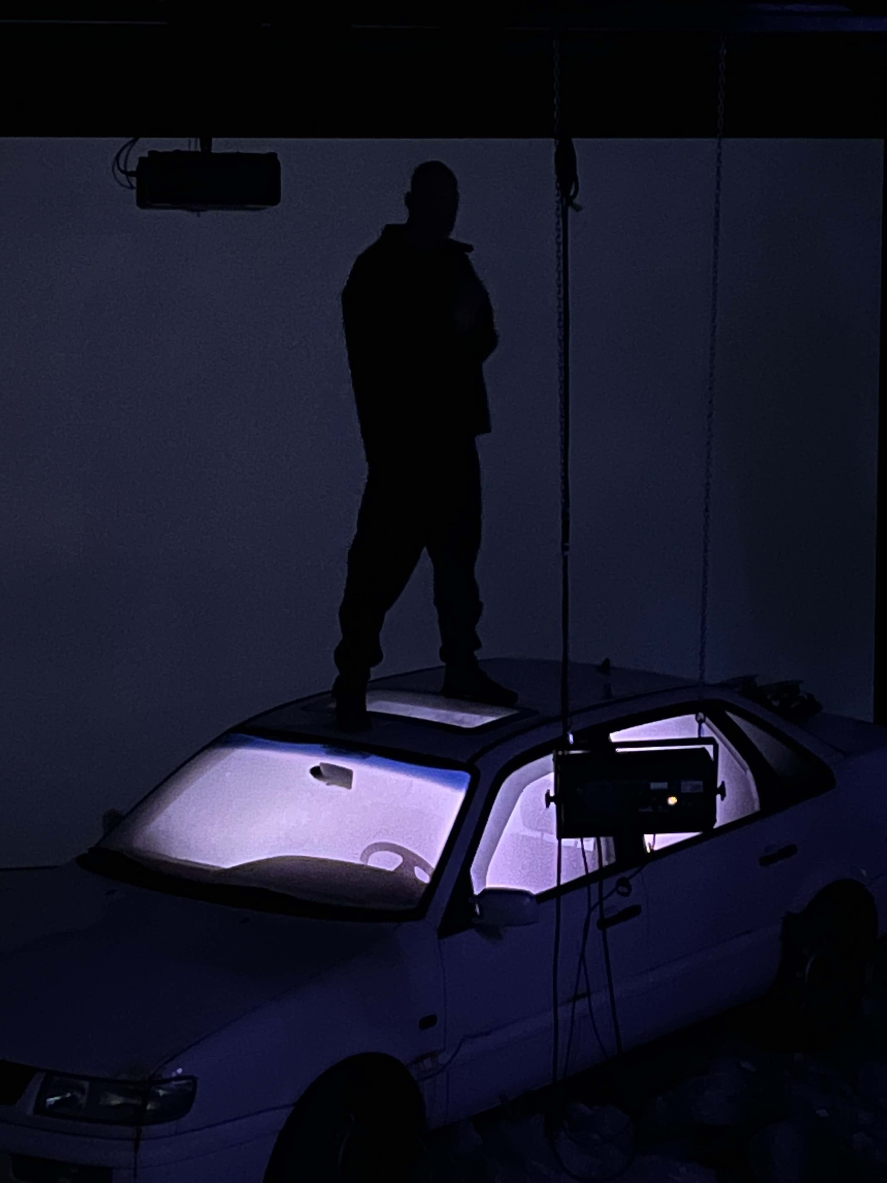 Untimely visitors drift upon a twilight beach, a blackened hole opens in a car park, exhausting into the atmosphere and afflicting a nearby town. This is the story behind MIASMA, a live AV installation by Hannah Rose Stewart and Blackhaine, combining dance, video, sound and light. The work incorporates 3D design, neo-noir film, and the Japanese dance theatre of Butoh to unearth sensations of dread, mourning, and alienation that are reflected in the shows light and space design. Isolating performers in theatrical beams of light, the lighting bridges the space between what is projected and what is performed, incorporating live bystanders into the piece’s unfolding.