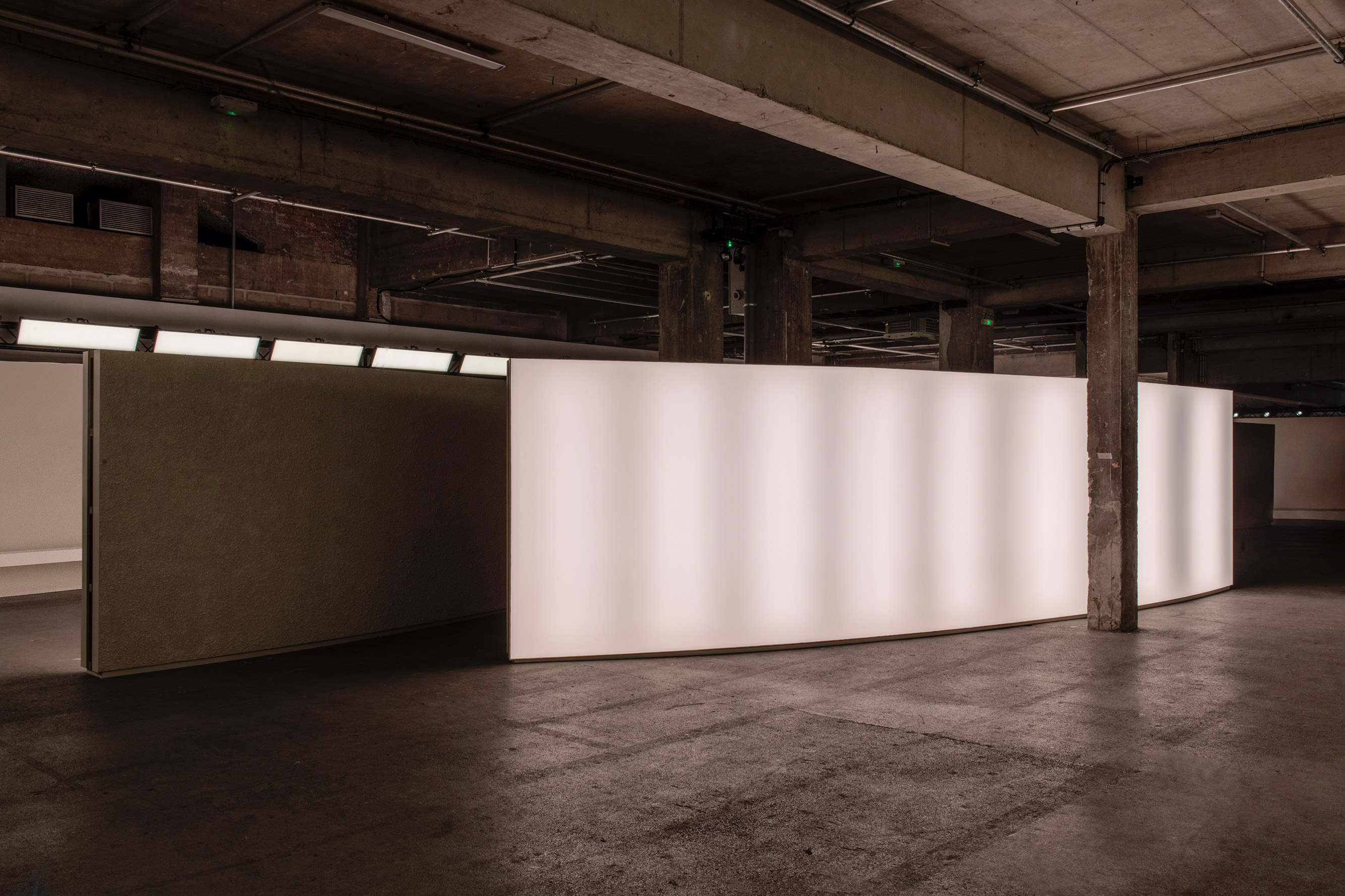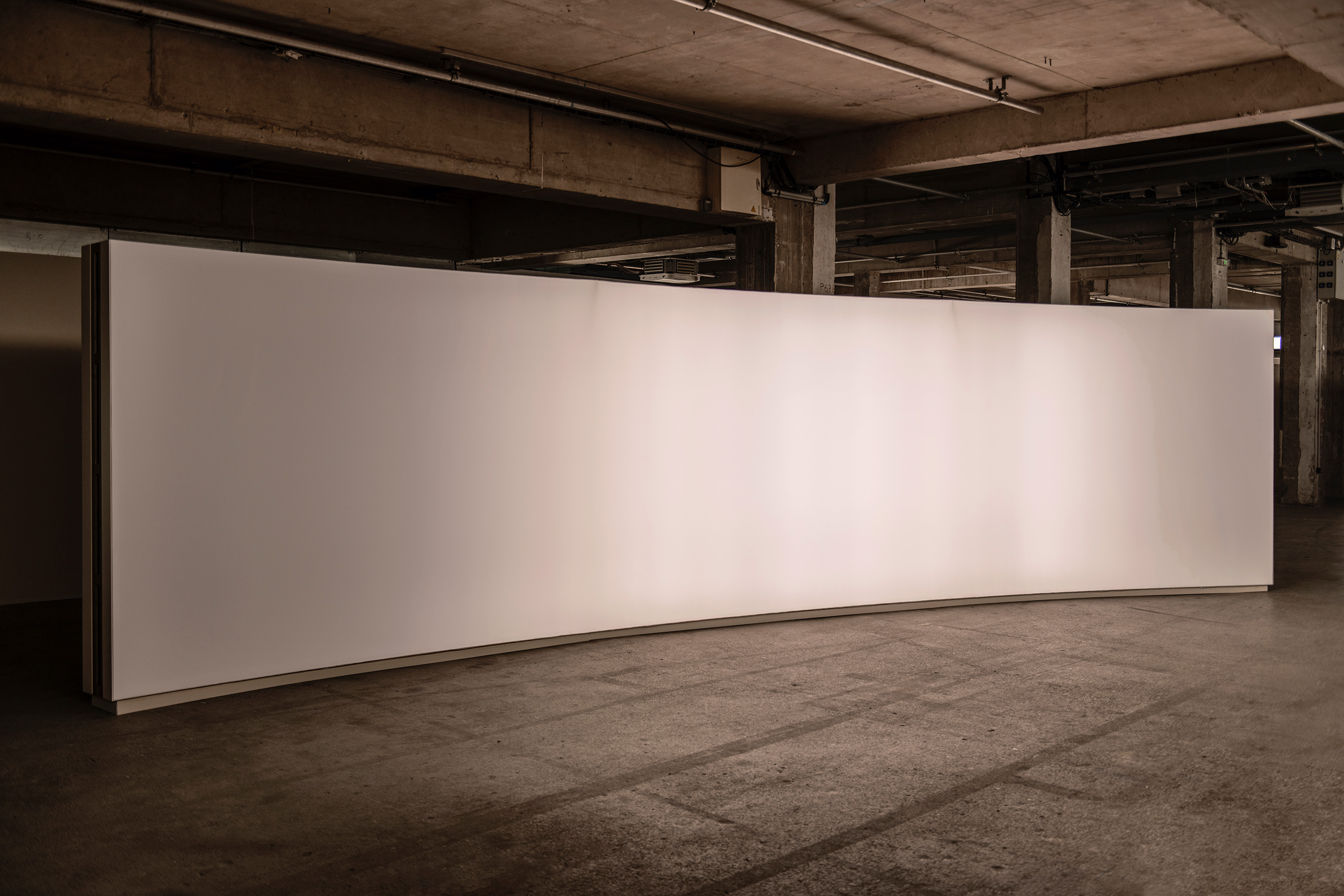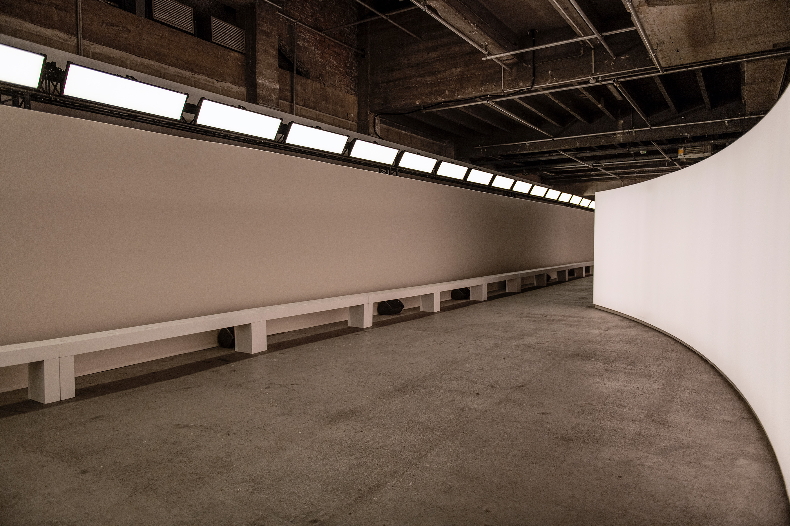 Staged in the vaulted volume of the Palais de Tokyo, Time’s SS’24 runway presentation carves minimilastic shadows out of textured surfaces. Curved panels sinew down the runway like poetic brackets in a poetry of motion, a Land-Art vestige brought indoors. One face is rouch-cast, emulating the soft grain of stone, the Barisol exterior etches a sleek, futuristic edge down the spine of the catwalk. Shifting from one side to the other, the season’s silhouettes dispel subtle shadow patterns on the concrete floor.